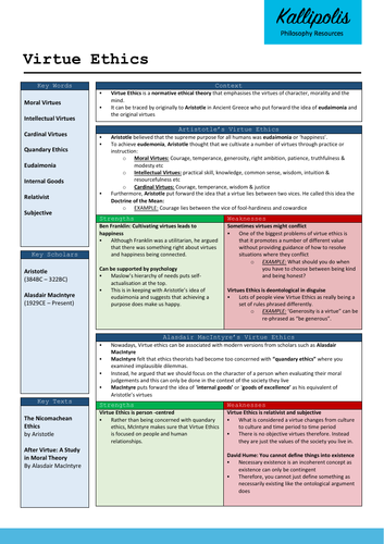 Virtue Ethics Knowledge Organiser Teaching Resources